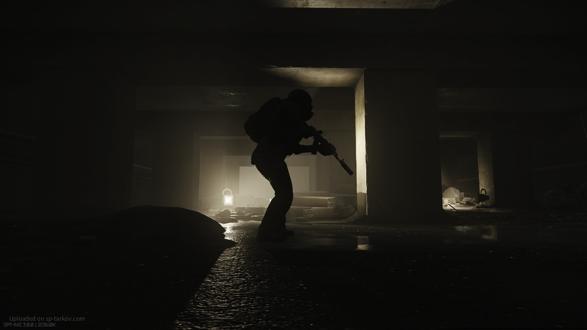Heya gamers! Back again with another screenshot on Customs as it seems to be a grave mind of nice cinematic shots for me, lol. I'm a sucker for silhouettes, and I absolutely love how well this went, especially with an idea I had by making the PMC "holster" his weapon by looking down and using free-look to look up, so he doesn't constantly have his gun at the ready. Let me know what you gamers think, and have a great day!
